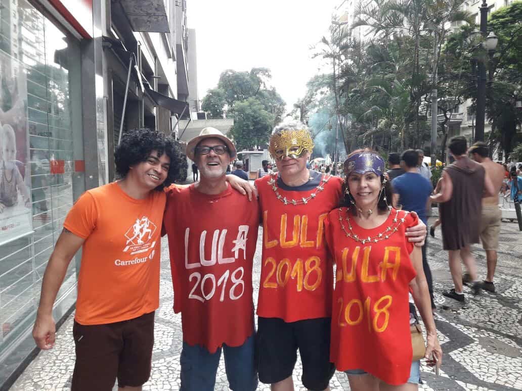 Foi significativo também as ações organizadas de grupos de petistas no centro de São Paulo que saíram fantasiados com abadás com a frase “Lula 2018”, reafirmando a candidatura de Lula 2018 entre os foliões. Como disse Francisco Mariano, por iniciativa do DAP no Comitê em defesa da democracia e da candidatura de Lula do Centro paulista, foi feito um mutirão entre os militantes para a produção dos abadás e a formação do Cordão pró-Lula2018 que saiu todos os dias de carnaval fantasiados com Lula2018 com o intuito de percorrer os blocos e fazer a propaganda do partido.