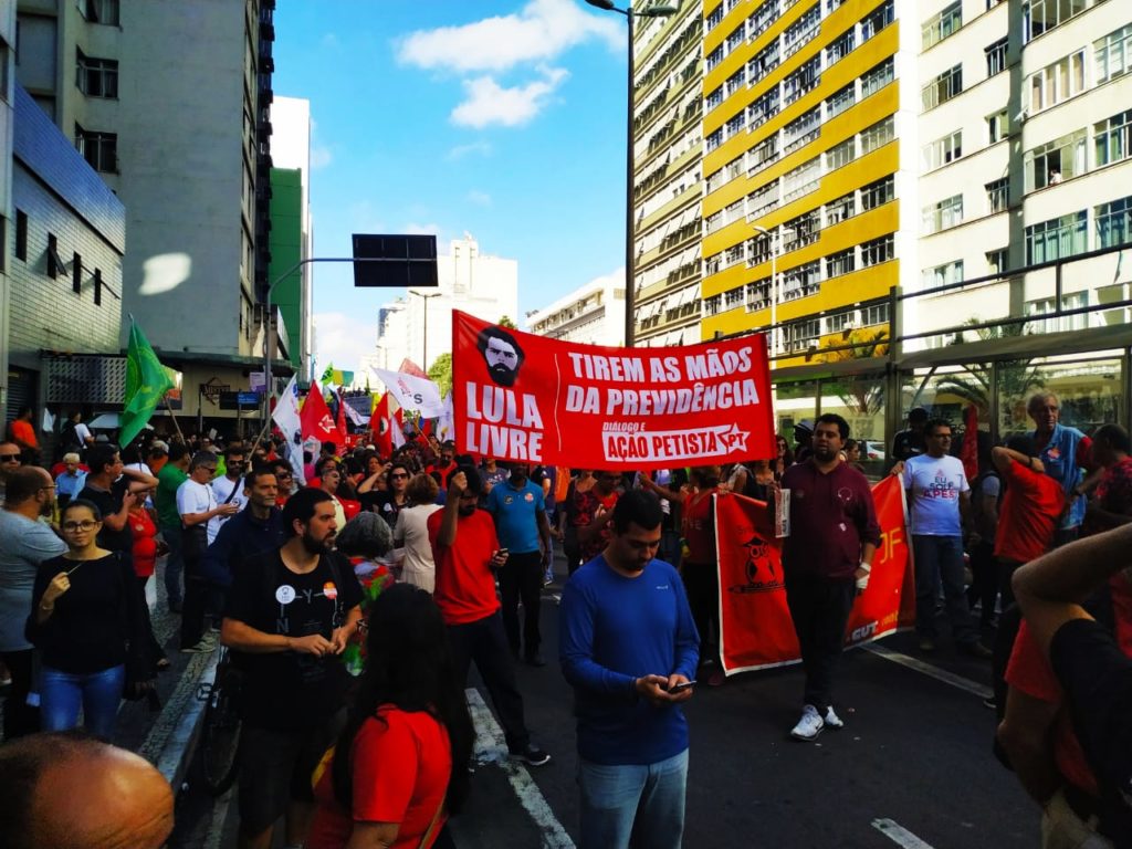 Confira algumas imagens da militância do Diálogo e Ação Petista presente nas manifestações que aconteceram na última sexta-feira (14), durante a Greve Geral contra a reforma da Previdência Social proposta pelo governo Bolsonaro. Também puderam ser vistos cartazes e faixas contra os cortes na Educação, por mais empregos, e pela liberdade do companheiro Lula.