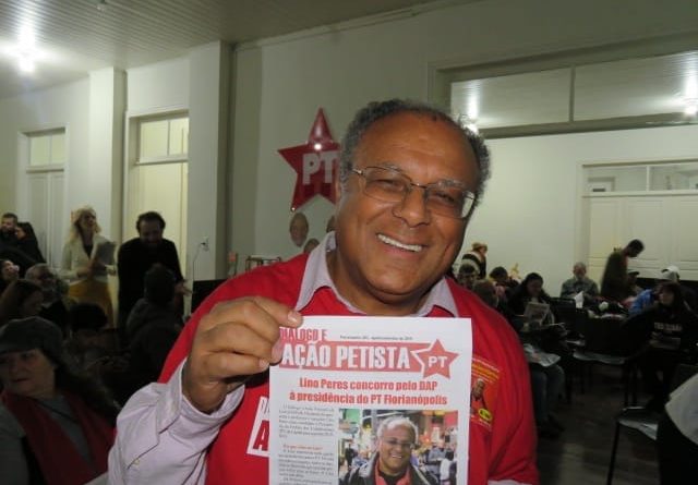 O companheiro Lino Peres é professor e vereador na capital catarinense. Este ano, assumiu o compromisso de ser candidato à presidência do PT municipal representando o Diálogo e Ação Petista. Em Florianópolis, a chapa do DAP tem as seguintes numerações: diretório nacional – 210, diretório estadual – 410, diretório municipal – 610, e presidente municipal – 510.