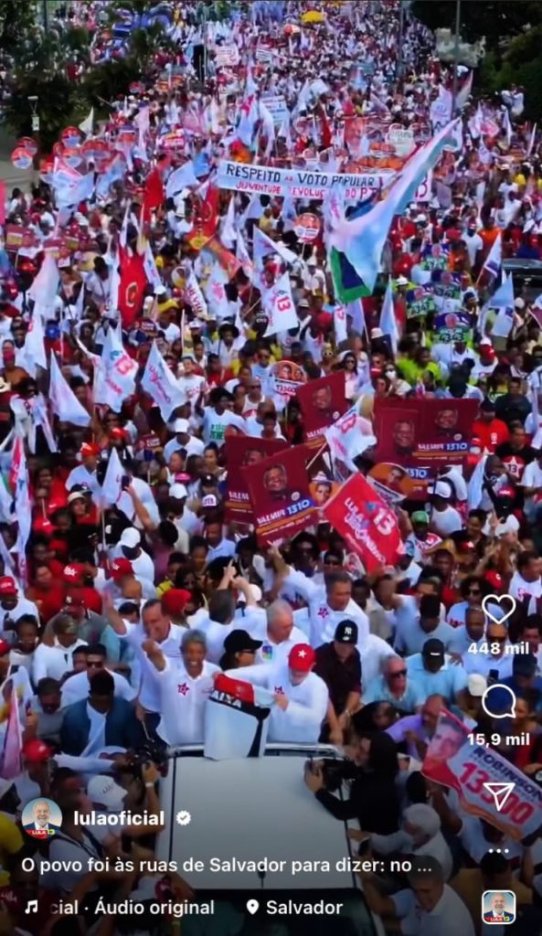 📸 Na foto acima, caminhada de Lula em Salvador em 30/09