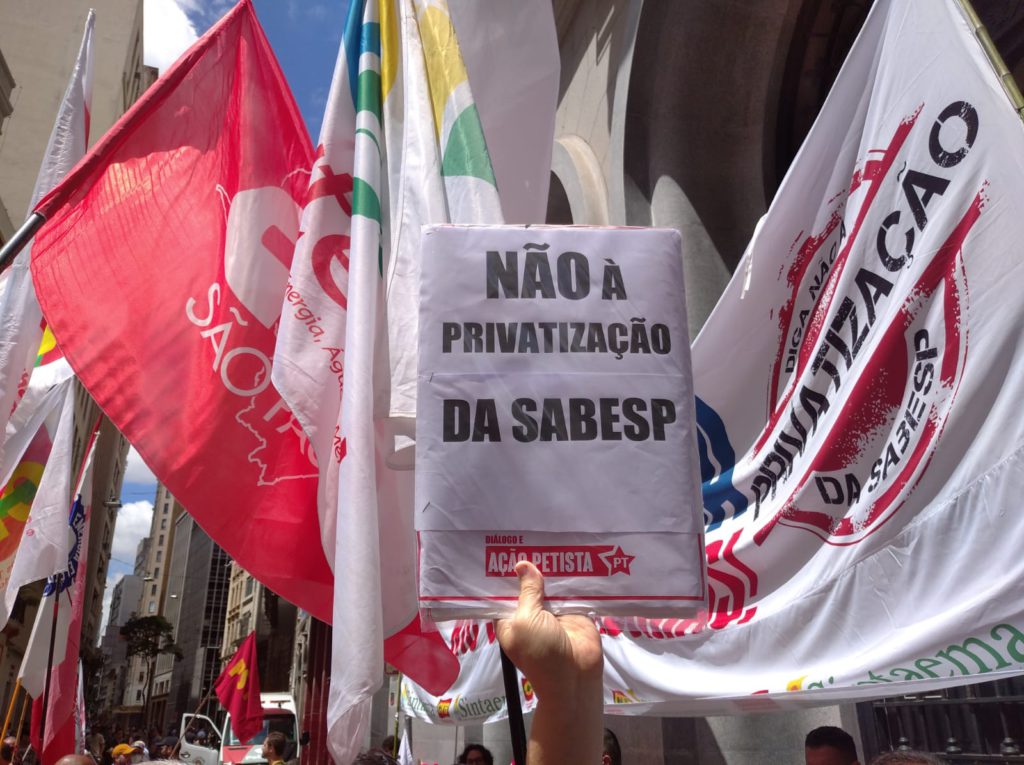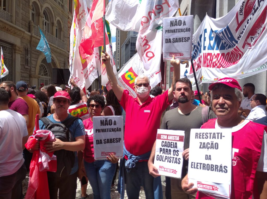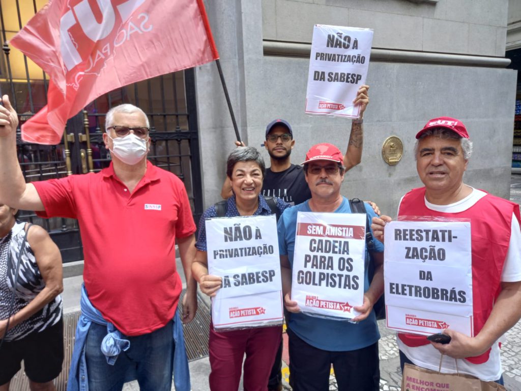 Convocado pela Federação Nacional dos Urbanitários (FNU), CUT e outras entidades, cerca de 300 pessoas participaram nesta terça-feira 14/02 na capital Paulista do ato contra a privatização das empresas de saneamento básico como a Sabesp, transporte ferroviário como a CPTM e pela reestatização da Eletrobras.