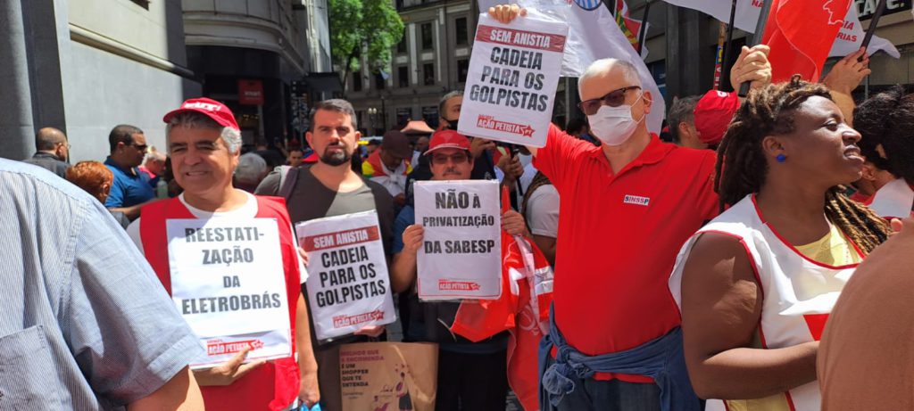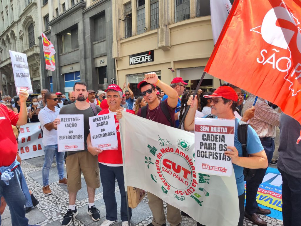 Durante o ato, várias falas denunciaram a picaretagem da privatização da Eletrobras, cobrando assim para que governo Lula reestatize nossa empresa de energia.