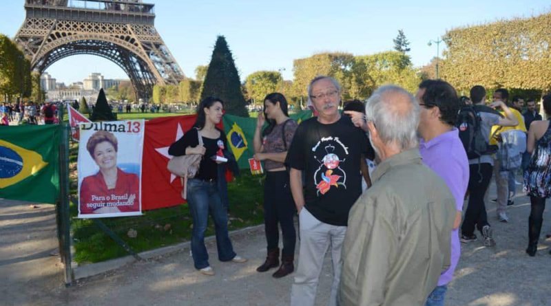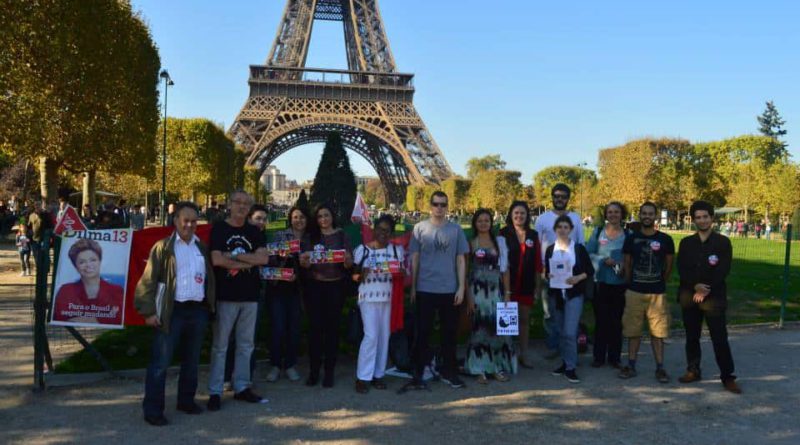 Cerca de 40 brasileiros se reuniram perto da Torre Eiffel, em Paris, no sábado dia 18, num “camisetaço” de apoio a Dilma, chamado pelo Diálogo e Ação Petista. O DAP Paris foi construído durante a campanha do Plebiscito Popular (mais de 4,6 mil pessoas votaram na França) e é formado em sua maioria por pós-graduandos brasileiros que integram o comitê “Paris pela Constituinte”.