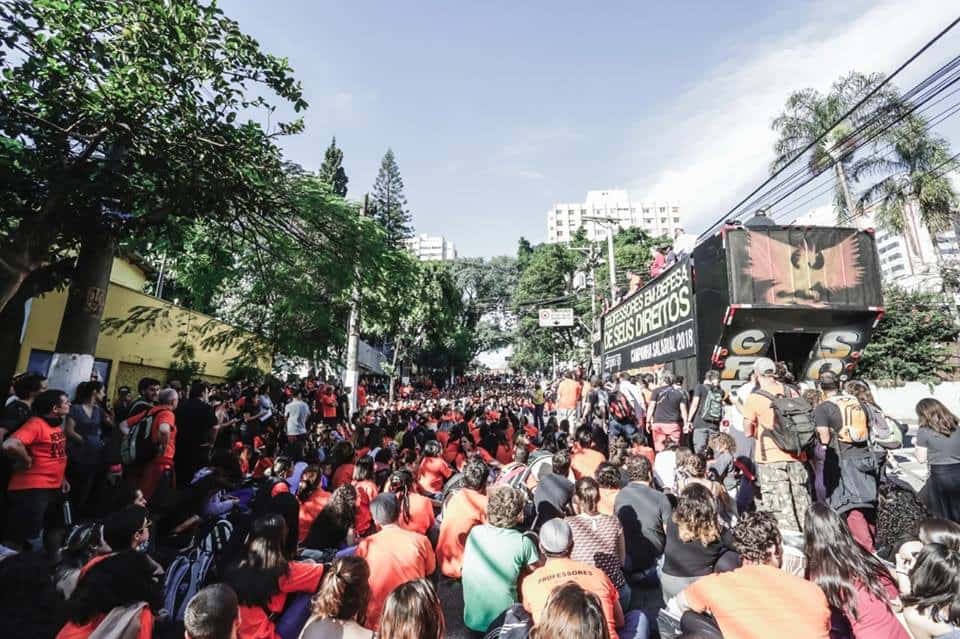 Nesta terça 29 mais de 100 escolas paralisaram atividades. A Assembleia do Sinpro-SP, a tarde, com 1500 professores, foi a maior da História do sindicato, seguida de ato com 5 mil pessoas – somado de professores e sindicatos do ABC, Guarulhos e de outras cidades da região metropolitana e muitos estudantes – que foi até o MASP.