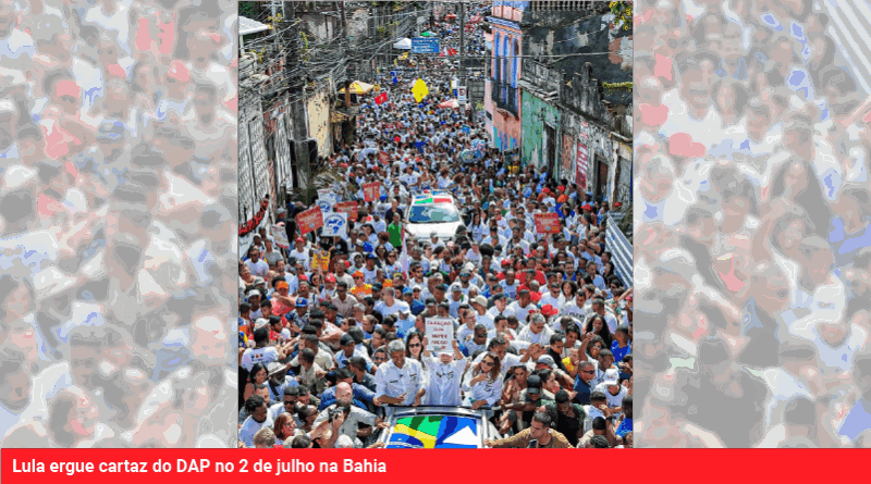 Uma explosão nas redes sociais de um grito preso na garganta da militância e dos simpatizantes. Foi a reação dos petistas em todo Brasil à fotografia feita por Ricardo Stuckert durante a passeata com Lula em 2 de julho, Festa da Independência da Bahia, data em que se comemora a expulsão dos portugueses de Salvador. Lula empunha um cartaz do Diálogo e Ação Petista com uma frase curta que aponta o caminho: “Taxação dos super ricos”. Na noite, a foto chegou à GloboNews que comentou a autoria do Diálogo e Ação Petista Associação. Hoje a mesma foto está nos principais jornais.