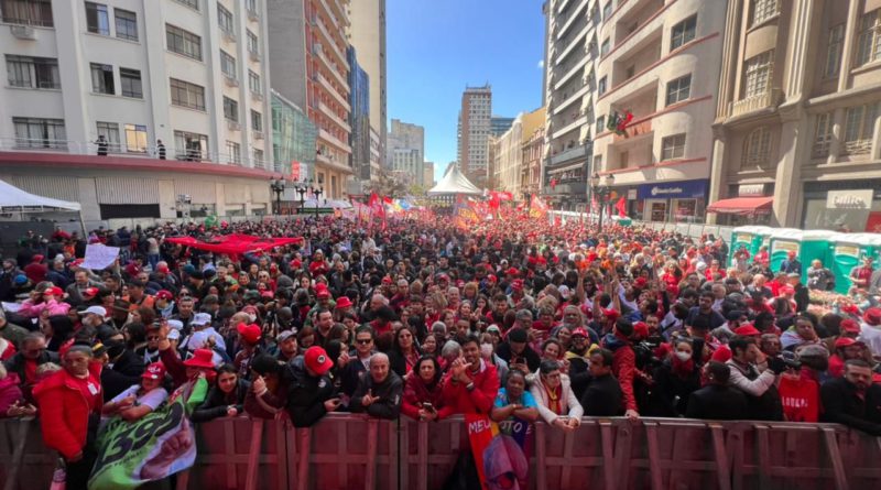Ler maisA Praça Tancredo Neves, no centro de Florianópolis, ficou abarrotado de gente neste domingo, 18, no comício Lula Presidente. Num