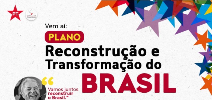 O PT lança, nesta segunda, as 10h, o Plano de Reconstrução e Transformação do Brasil. O lançamento será feito pela internet por Lula, Dilma e Haddad.